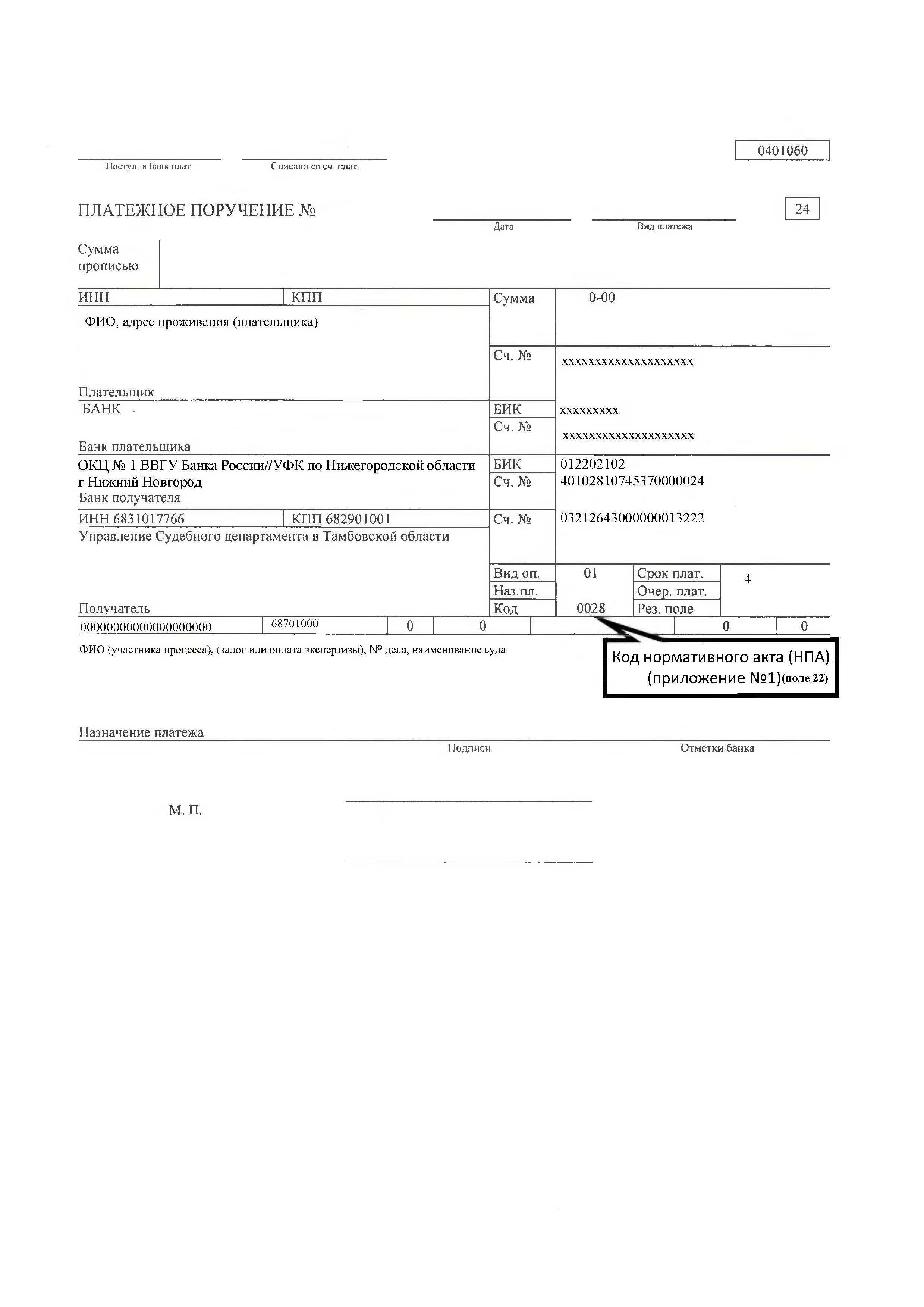 Образец платежного поручения